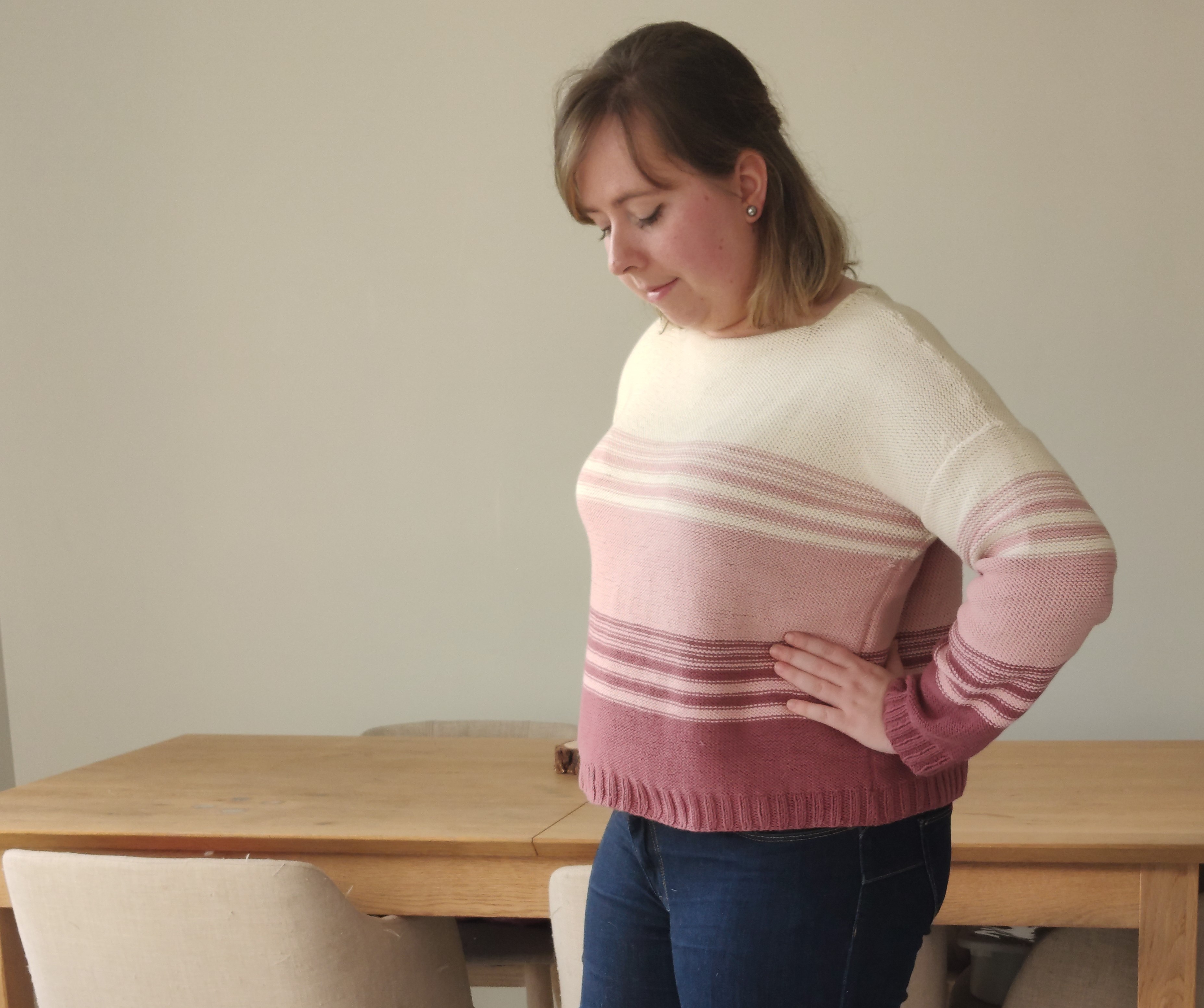 phildar jade écocoton fil bio pull rayé rayure rose vieille morue 4