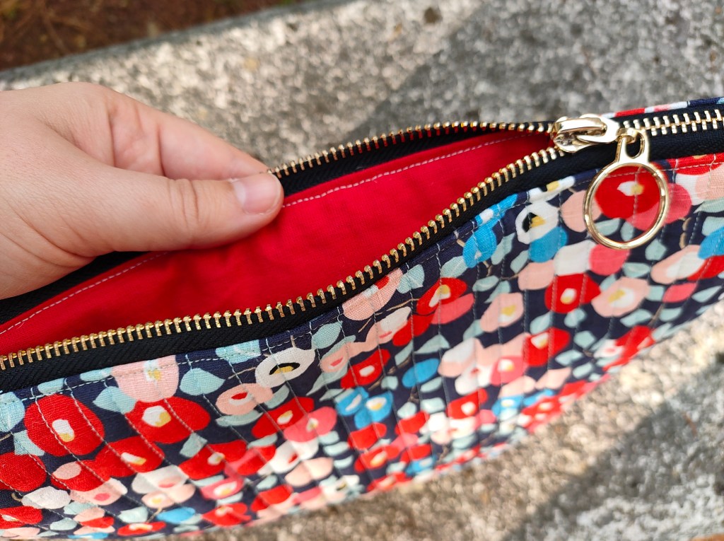 Vous reconnaissez peut-être la forme de cette pochette-là, car je l’avais déjà cousue il y a quelques temps. Le format est si pratique, et le tutoriel tellement clair, que j’ai récidivé. Il s’agit en effet du modèle de Lise Tailor, dont j’apprécie les détails et les finitions soignées. Non mais regardez-moi ces extrémités de fermeture éclair !