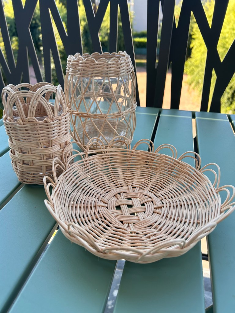 Bonjour, bonjour ! C’est la rentrée, et pour être dans le thème, voici le trio de pots à crayons que je me suis fabriqué en rotin. Pour être plus précise, il y a deux pots à crayons et une sorte de corbeille / vide-poche pour le petit matériel de bureau.